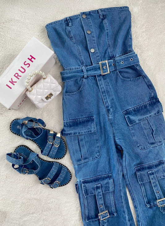 Multi Pockets Strapless Cargo Jumpsuit