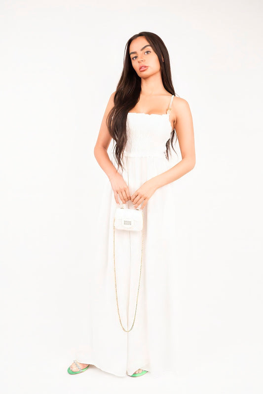 Shirred Bandeau Wide Leg Jumpsuit